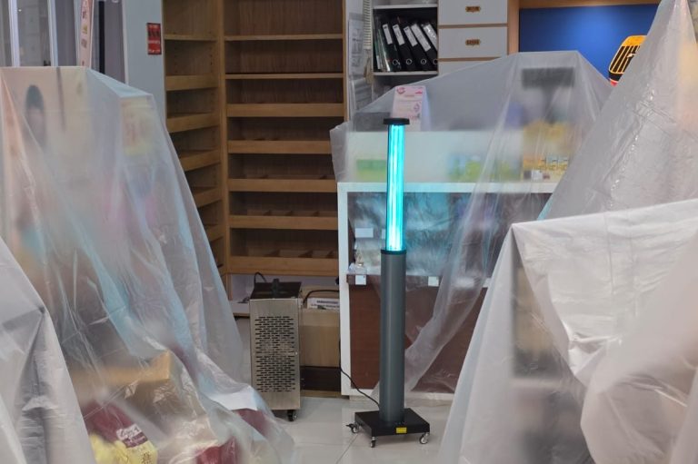 Using UV radiation as a final layer of defense to destroy spores on surfaces.
